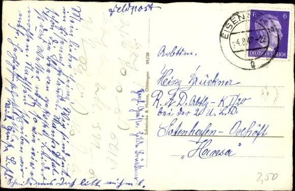 Zustand, siehe Scan, gelaufen, 1942 - ca 14 cm X 9 cm