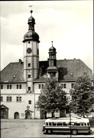 Ak Eisenberg in Thüringen, Rathaus, Bus
