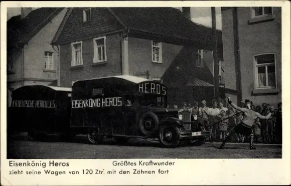 Ak Eisenkönig Heros zieht Auto mit den Zähnen