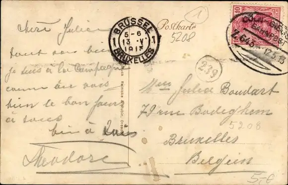 Zustand, siehe Scan, gelaufen, 1913 - ca 14 cm X 9 cm