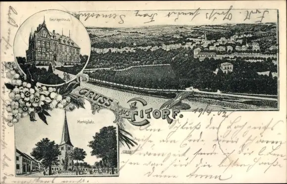 Ak Eitorf an der Sieg, Marktplatz, Krankenhaus, Totalansicht