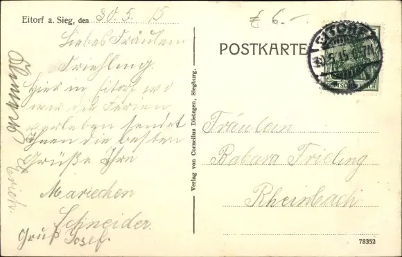 Zustand, siehe Scan, gelaufen, 1915 - ca 14 cm X 9 cm