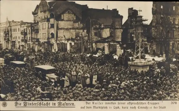 Ak Ełk Lyck Masuren Ostpreußen, Winterschlacht in Masuren, Kaiser, preußische Truppen, Marktplatz