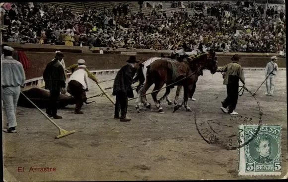 Ak El Arrastre, Stierkampf in der Arena, Abtransport eines toten Stiers