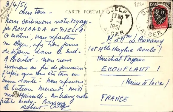 Zustand, siehe Scan, gelaufen, 1951 - ca 14 cm X 9 cm