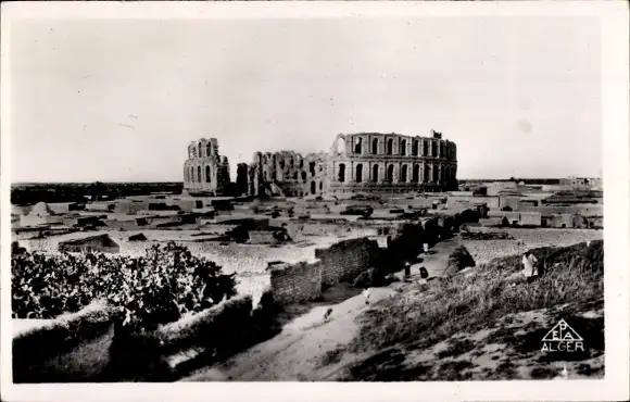 Ak El Djem Tunesien, Römisches Theater, Panorama