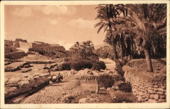 Ak El Kantara Algerien, Oued, Palmen, Ruine