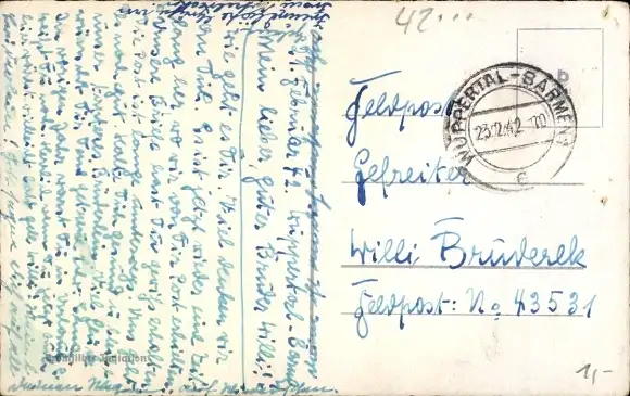Zustand, siehe Scan, gelaufen, 1942 - ca 9 cm X 14 cm