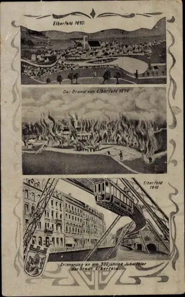 Ak Elberfeld Wuppertal, Totalansicht, Brand, Schwebebahn