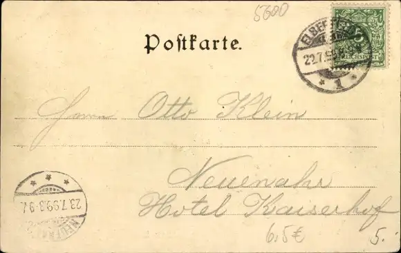 Zustand, siehe Scan, gelaufen, 1899 - ca 14 cm X 9 cm
