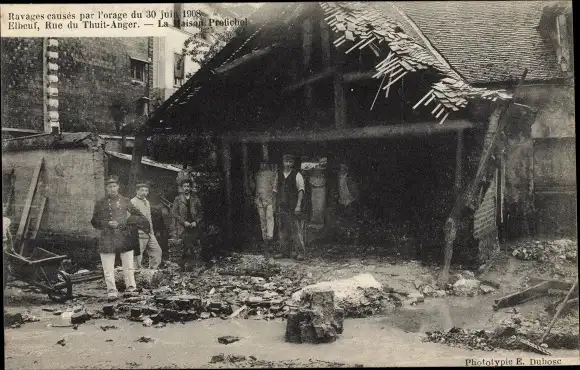 Ak Elbeuf Seine Maritime, Ravages causes par l'orage 1908, Rue du Thuit Anger