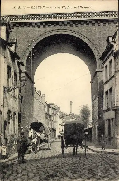 Ak Elbeuf Seine Maritime, Rue et Viaduc de l'Hospice