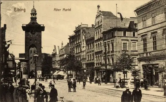 Ak Elbląg Elbing Westpreußen, Alter Markt, Passanten