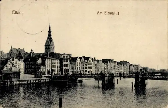 Ak Elbląg Elbing Westpreußen, Am Elbingfluss, Brücke