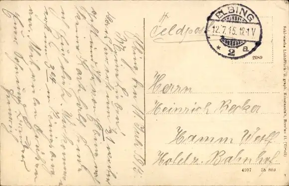 Zustand, siehe Scan, gelaufen, 1915 - ca 14 cm X 9 cm
