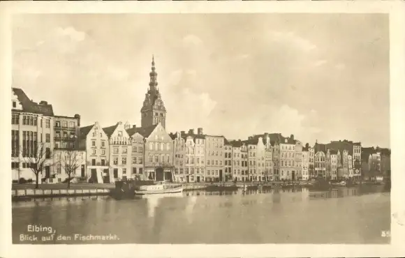 Ak Elbląg Elbing Westpreußen, Fischmarkt, Giebelhäuser