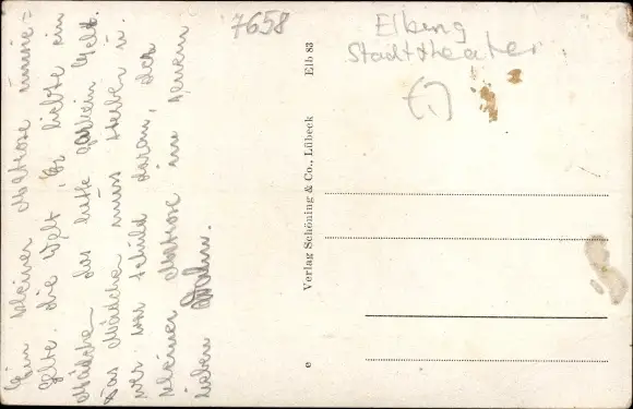 ungelaufen, Rückseite beschrieben, Eckknick links unten, fleckig, Ecken bestoßen