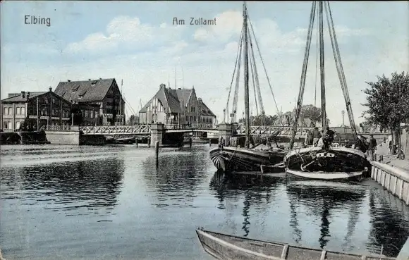 Ak Elbląg Elbing Westpreußen, Zollamt, Hafen, Boote