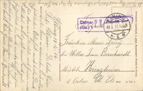 Zustand, siehe Scan, gelaufen, 1916 - ca 40 cm X 25 cm