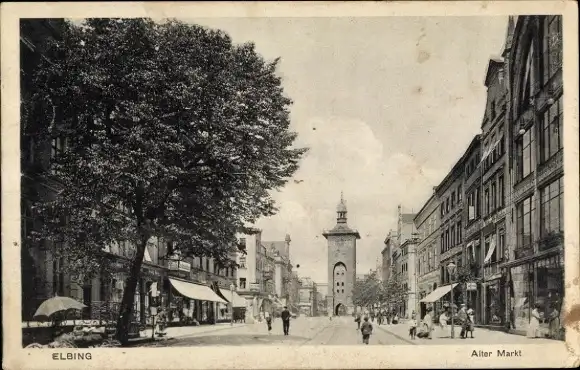 Ak Elbląg Elbing Westpreußen, alter Markt, Torturm