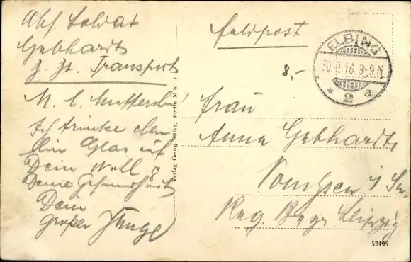 Zustand, siehe Scan, gelaufen, 1916 - ca 14 cm X 9 cm