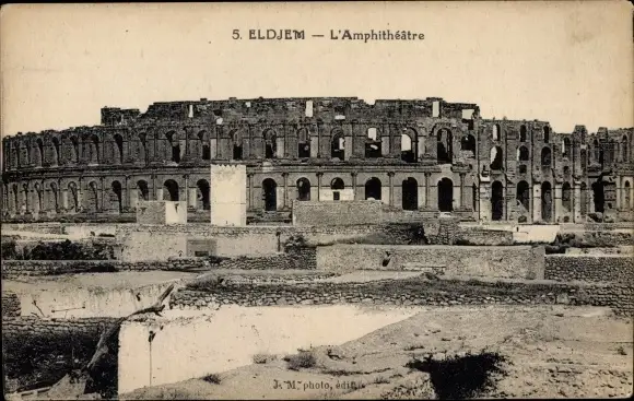 Ak Eldjem Tunesien, The Amphitheater, Blick auf das Amphitheater, Ruin