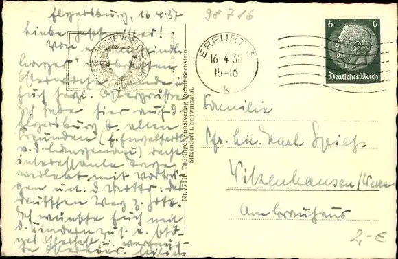 Zustand, siehe Scan, gelaufen, 1938 - ca 14 cm X 9 cm