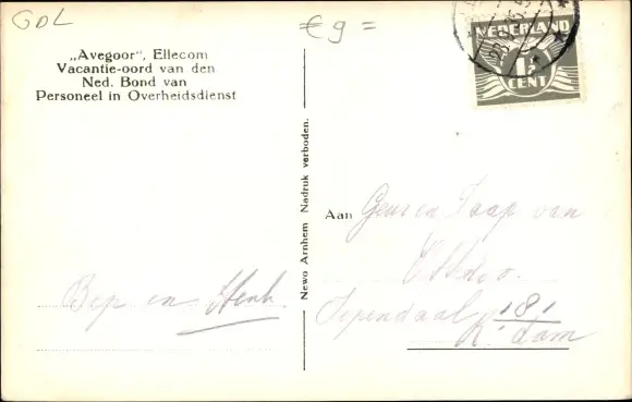 Ak Ellecom Gelderland, Vacantieoord Avegoor