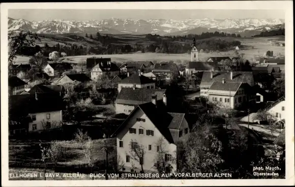 Ak Ellhofen Weiler Simmerberg im Allgäu, Panorama, Blick vom Straussberg, Alpen