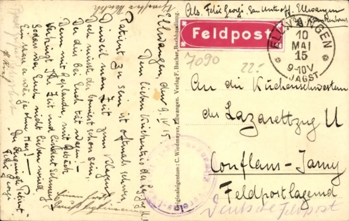 Zustand, siehe Scan, 1915, gelaufen - ca 14 cm X 9 cm