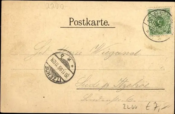 Zustand, siehe Scan, gelaufen, 1899 - ca 14 cm X 9 cm