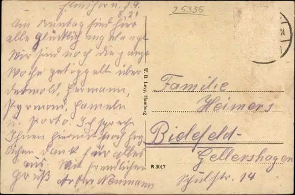 Zustand, siehe Scan, gelaufen, 1921 - ca 14 cm X 9 cm