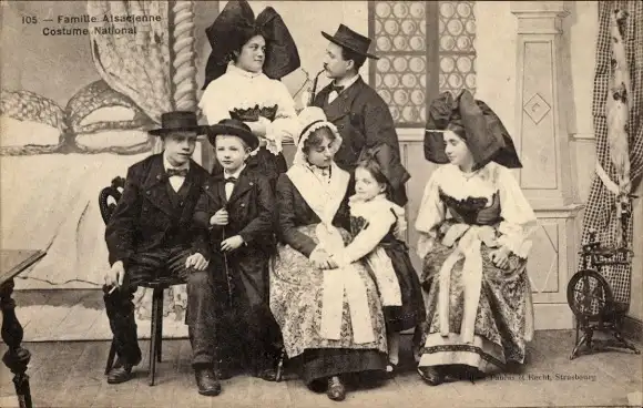 Ak Elsässer Familie, Elsässer Tracht, Spinnrad
