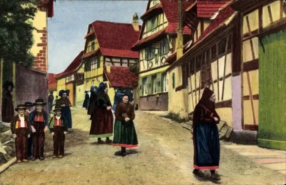 Ak Elsässer Trachten, Rückkehr vom Kirchgang