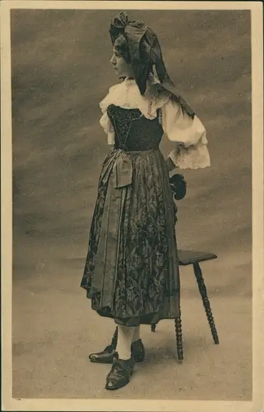 Ak Elsässerin, Standportrait, Elsässer Tracht