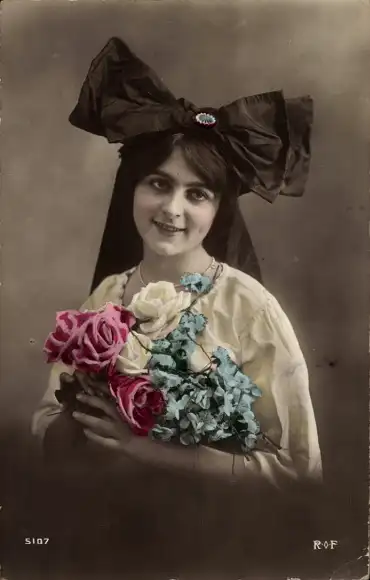 Ak Elsässerin in Volkstracht, Blumenstrauß