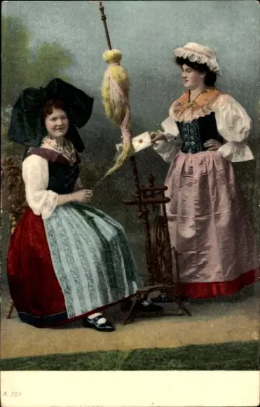 Ak Elsässerinnen beim Spinnen, Spinnrad