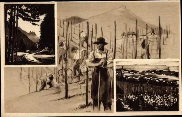 Ak Elsass Bas Rhin, Teilansicht, Traubenlese