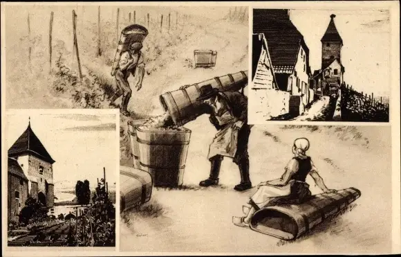 Ak Elsass Bas Rhin, Teilansicht, Traubenlese