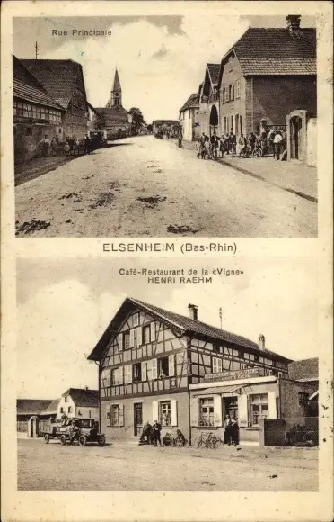 Ak Elsenheim Elsass Bas-Rhin, Rue Principale, Café-Restaurant de la Vigne