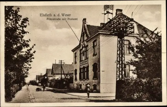 Ak Elsfleth an der Unterweser, Die Peterstraße mit Postamt
