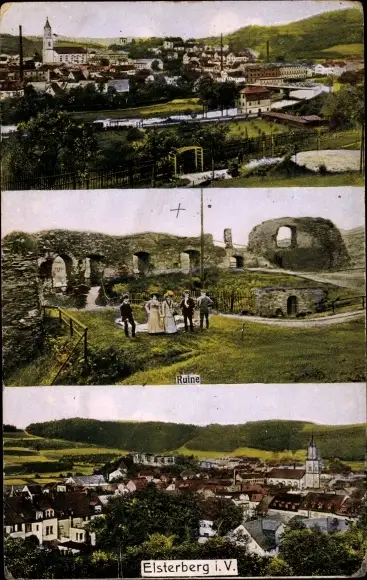 Ak Elsterberg im Vogtland, Gesamtansichten, Ruine