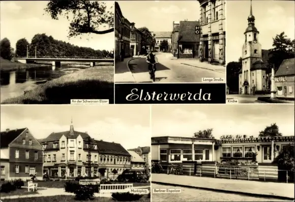 Ak Elsterwerda in Brandenburg, Lange Straße, Kirche, Berliner Eispalast