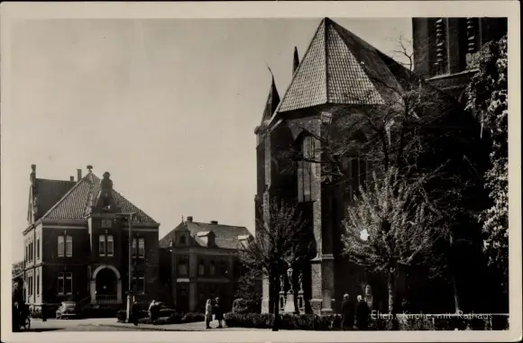 Ak Elten Emmerich am Niederrhein, Kirche mit Rathaus