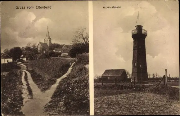 Ak Eltenberg Elten Emmerich am Niederrhein, Aussichtsturm, Kirche, Ortsansicht
