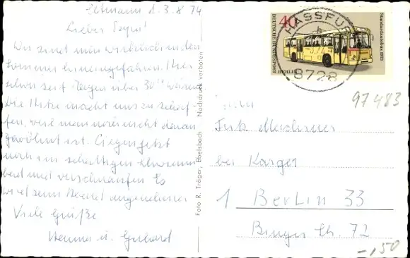 Zustand siehe Scan, gelaufen, 1974 - ca 14 cm X 9 cm