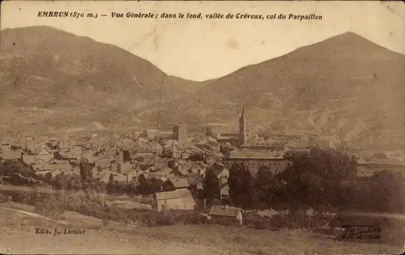 Ak Embrun Hautes Alpes, Gesamtansicht, Creveux-Tal