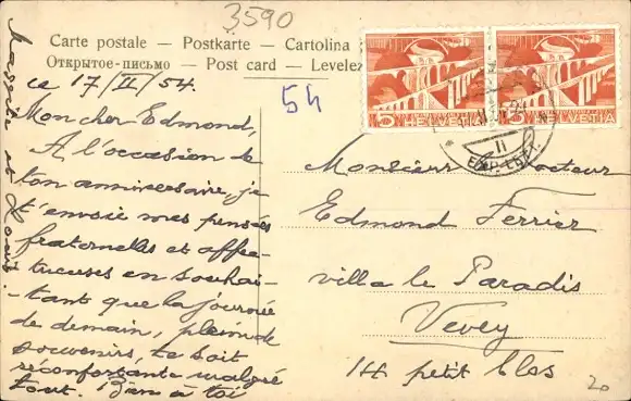 Zustand, siehe Scan, gelaufen, 1954 - ca 14 cm X 9 cm