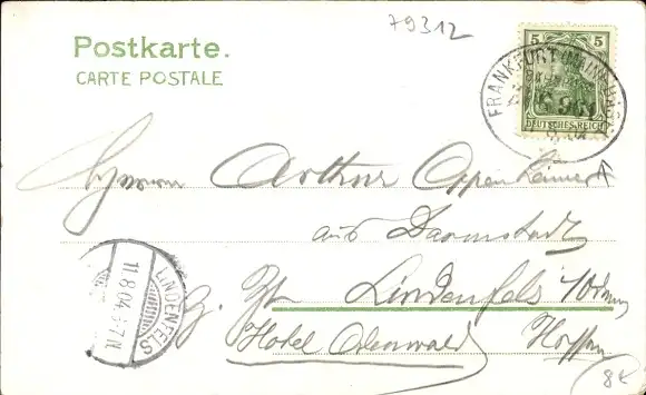 Zustand, siehe Scan, gelaufen, 1904 - ca 14 cm X 9 cm