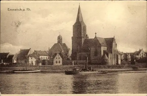 Ak Emmerich am Niederrhein, Dampfschiff, Kirche